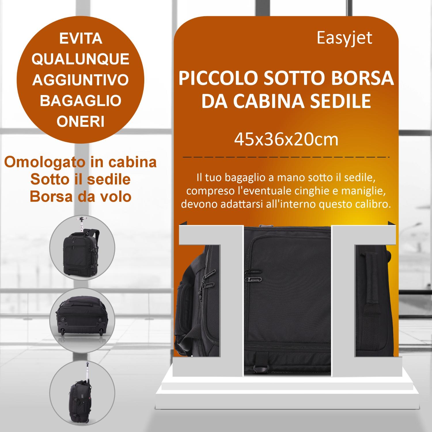 Questo zaino trolley di qualità superiore si adatta perfettamente alla franchigia massima di 45x36x20 cm prevista da Easyjet, il che significa che potete mettere in valigia tutto ciò che vi serve senza dovervi preoccupare di pagare costi aggiuntivi in aeroporto.